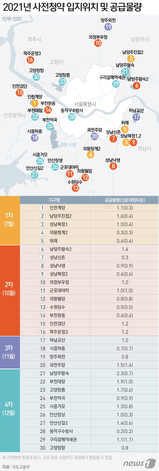 내년 7월부터 3기 신도시 사전청약…모두 6만 채 공급 연이은 고강도 대책에도 시장 불안정…공황 구매 6만 채 규모 3기 신도시 등의 사전청약 일정 발표 공공분양 분양가상한제 적용…가격 30%가량.